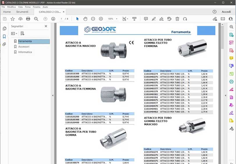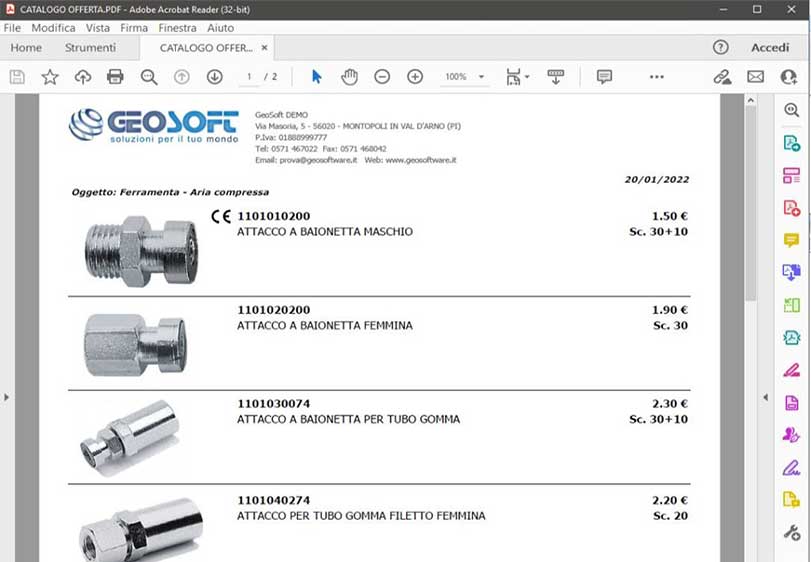 Viene generato un catalogo in PDF impaginato automaticamente in base ai dati caricati nel database del programma.