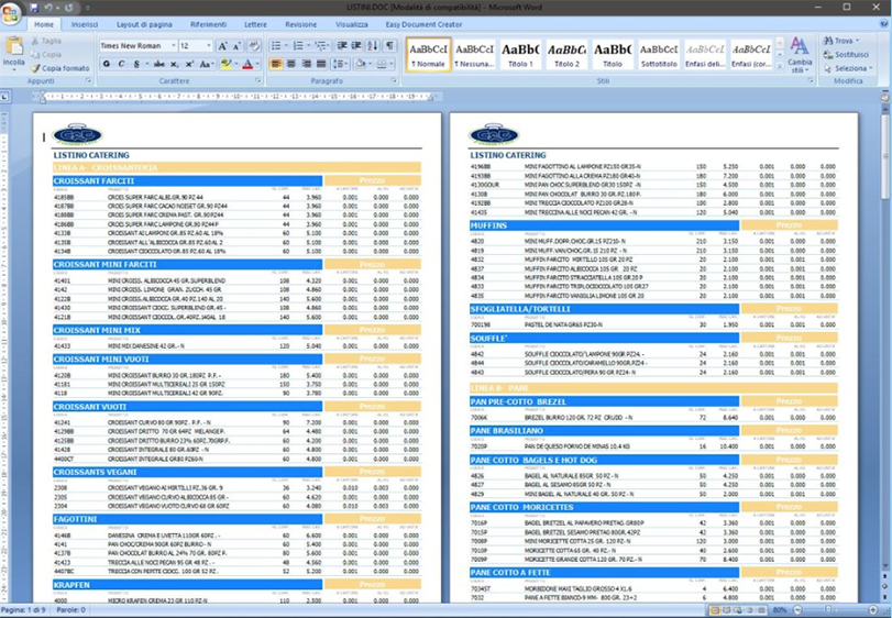 Viene generato un catalogo su WORD impaginato automaticamente in base ai dati caricati nel database del programma.