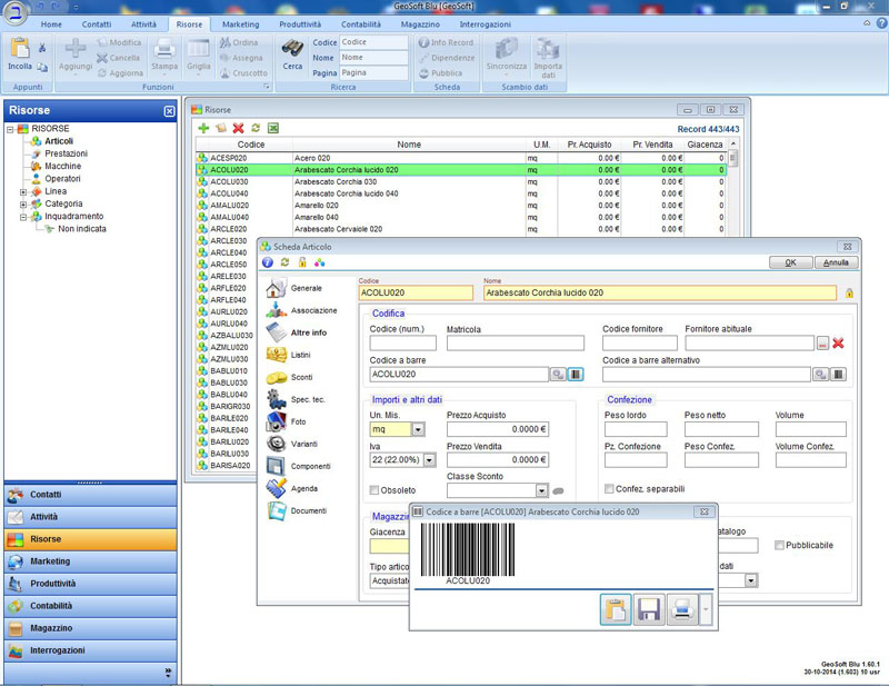 | Anagrafica Risorse: Articoli, Prestazioni, Macchinari, Operatori | ✔ | ✔ |