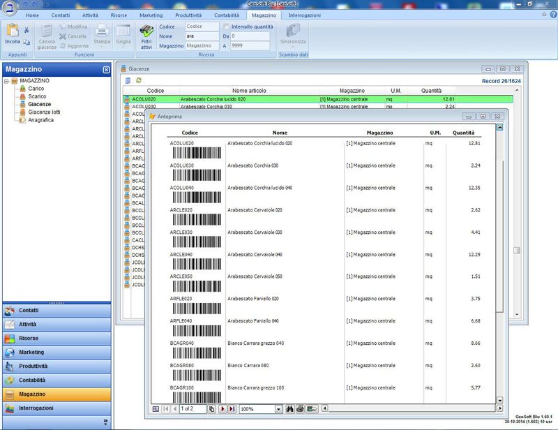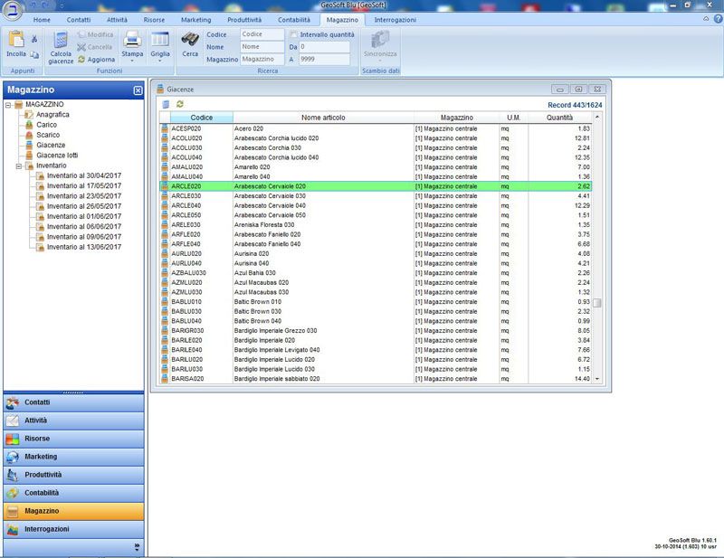 Possibilità di gestire più magazzini e giacenze relative. Gli inventari si posso creare in qualsiasi data.