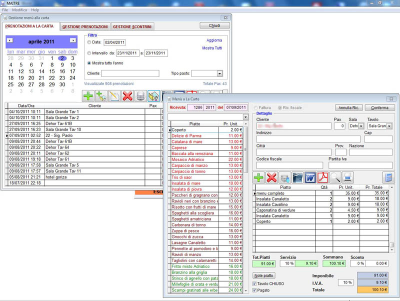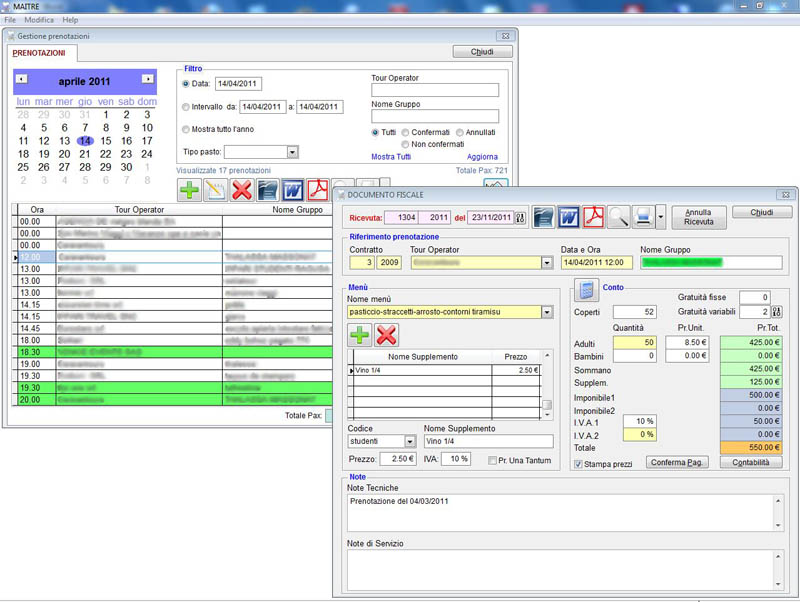Il software per Ristoranti che lavorano con Tour-operator e gruppi collettivi. Completo con agenda prenotazioni, à la carte, e contabilità e contratti di Tour-operator.
