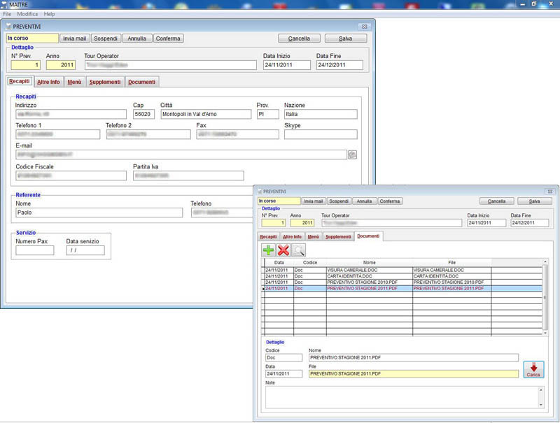 Dalla gestione del preventivo con invio email interno con documenti allegati, alla formulazione dei contratti enti turistici, con menù concordati, supplementi, gratuità fisse e variabili, menù specifici per bambini.